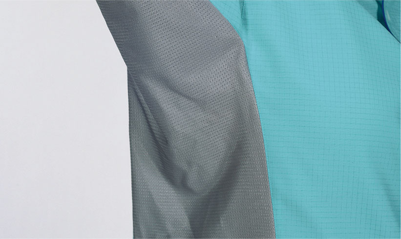 • 熱気のこもりやすい箇所をメッシュ生地にすることで通気性を高め、衣服内を快適に。