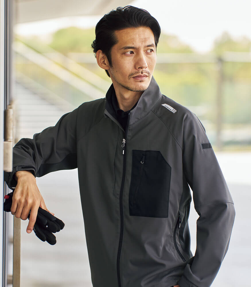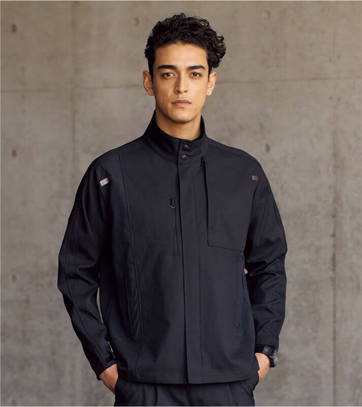 兼ね備えた快適な素材- 吸汗速乾、ストレッチ、高通気など着用者が快適に作業できる高機能素材を使用。