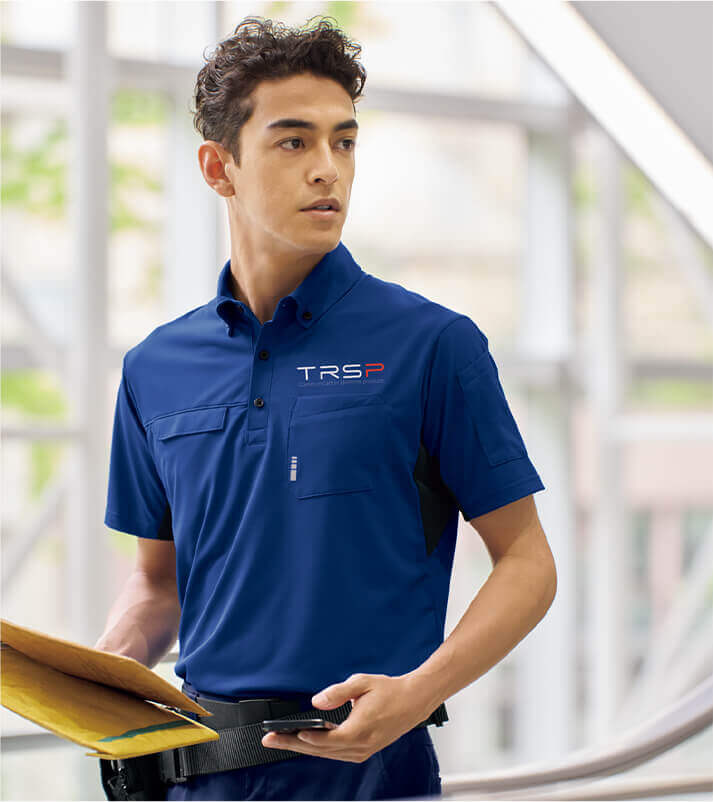 ツイル素材ながらも軽い着心地で体に負担をかけず、すべすべとした心地良い肌触りの素材がポイント。また生地のストレッチ性と運送業ならではの動きに合わせたパターン設計により、様々な体の動きにフィット。デザインや機能面にはアウトドアテイストを取り入れており、モチベーションUPや求人効果にも繋がる1着です。