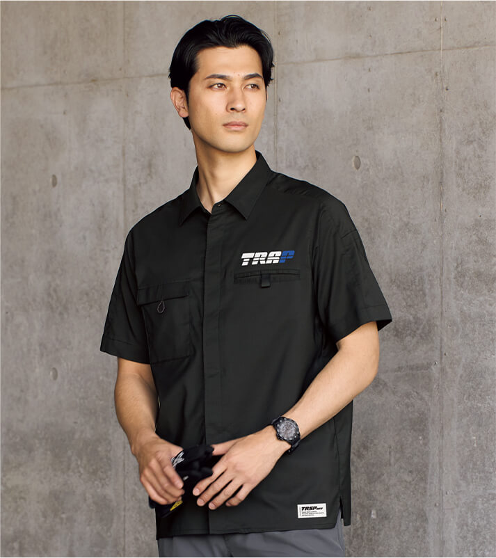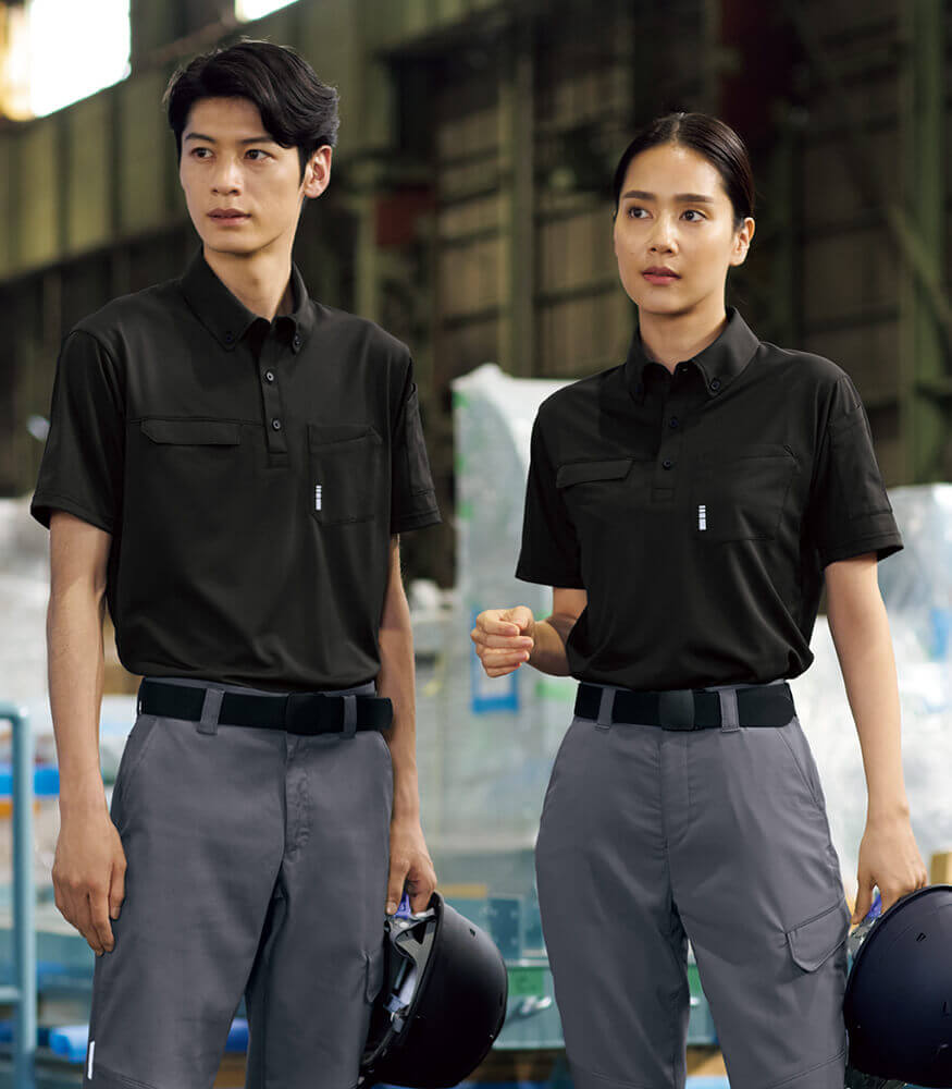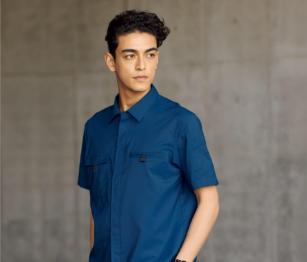 ポロシャツとは違う上品でスタイリッシュなテイストのシャツ。機能性を備えたリフレクトコードや名札ループがデザインのアクセントにもなり、全体をシンプルに仕上げました。高通気&ストレッチ素材を使用し、着用時の快適さも抜群。
