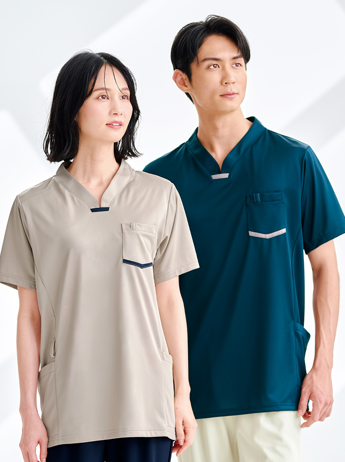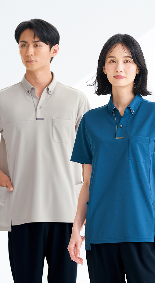 介護する人、される人、そしてその家族の方まで、すべての人が快適になるユニフォームを目指して。機能性だけではなく、優しさの思いを込めたウェアです。また、多様化するニーズに対応できるように様々なスタイルをそろえました。